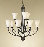 The Murray Feiss F2253/6+3ORB is a Large 9LT Chandelier in the Oil Rubbed Bronze Finish. This light fixture is from the Large Collection and is Underwriters Laboratories (UL) & Underwriters Laboratories of Canada (ULC) Approved. 30" Height x 29" Width Requires: 9 - 100A19CL - 100watt 120volt Clear A19 Medium Incandescent Light Bulb Shade = Opal Etched Glass